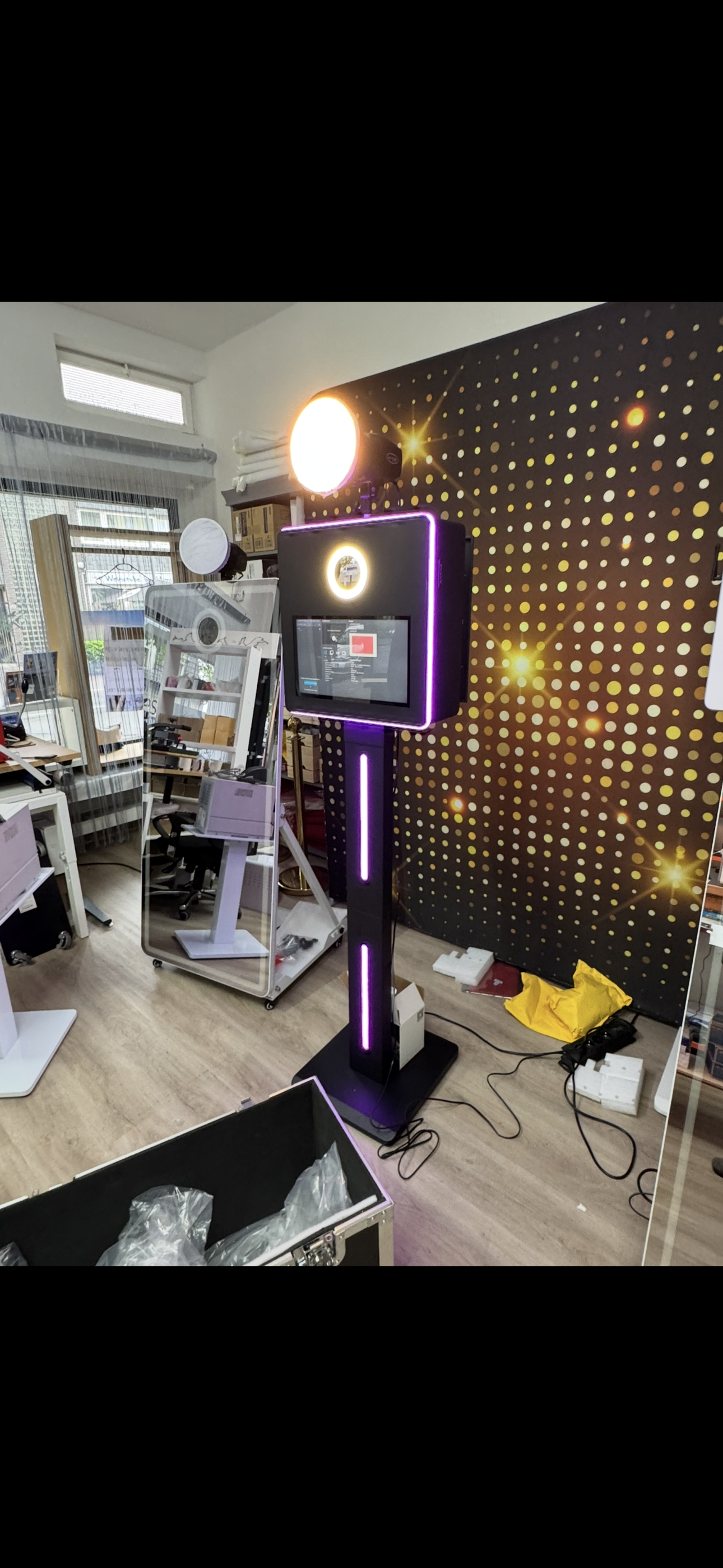 Gleichzeitig vermieten wir eine Fotobox. Jedes heileit auf jeder Party, Hochzeit oder Firmenfeier. Sie kriegen nicht nur eine Fotobox dahin gestellt, sondern haben jede menge Verkleidungen dabei. Wir bringen sie , bauen sie auf und erklären alles. Bilder werden innerhalb von 10sec ausgedruckt.