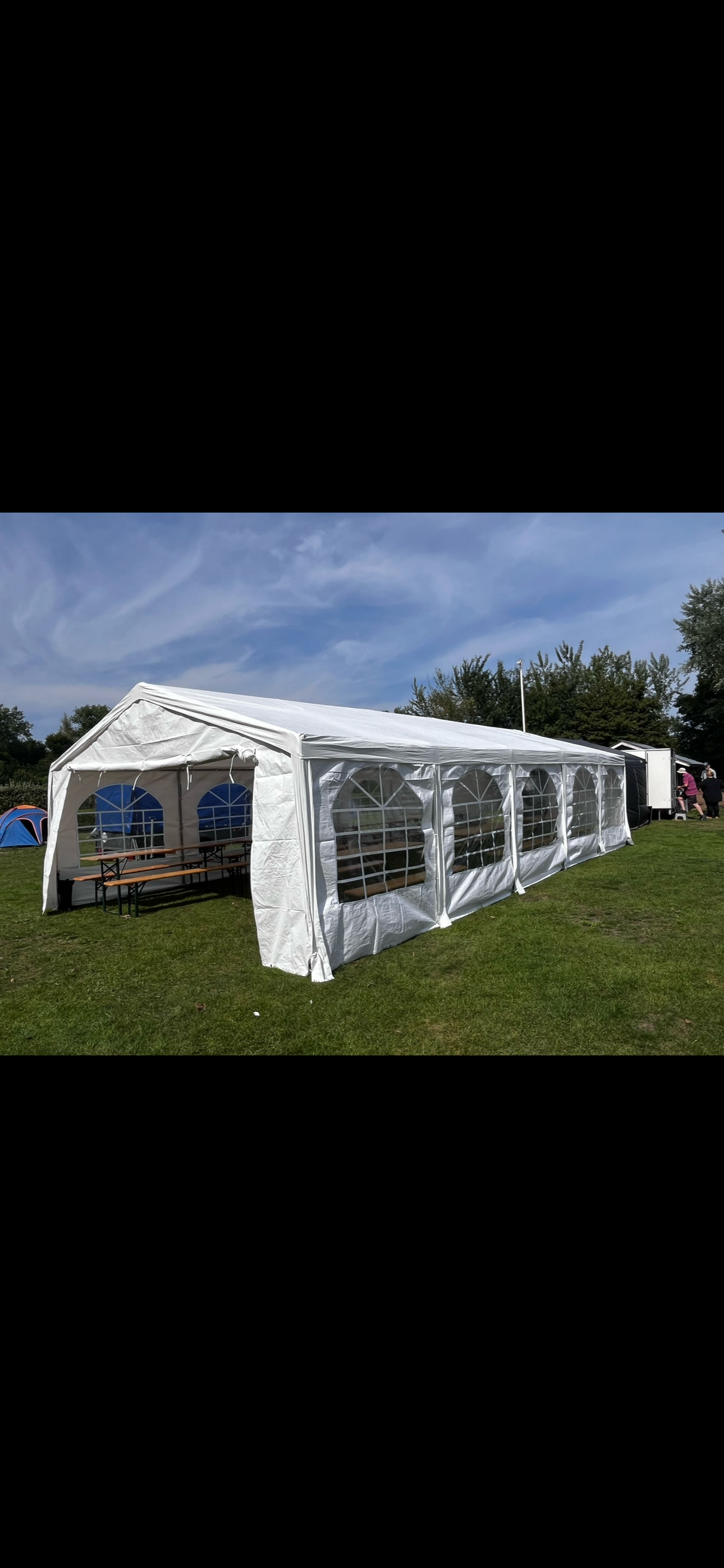 Sie wollen eine Party im Garten oder im Hof machen es soll Regnen ? Dann haben wir hier die Lösung. 5x12m mit Seitenteilen. Aufbauzeit ca 20min.